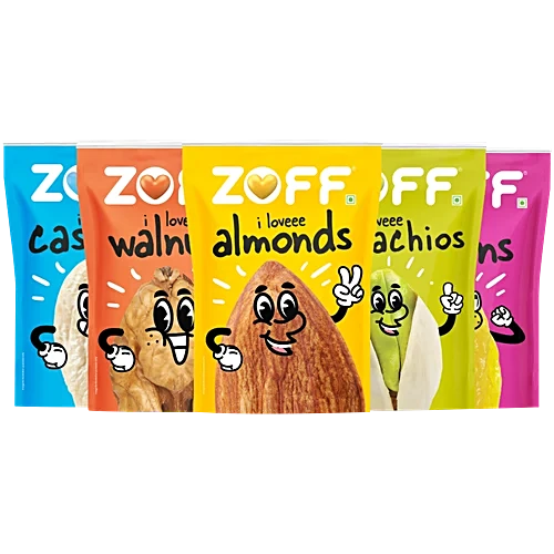 Zoff Dry Fruit Combo – Walnuts, Cashews, Almonds, Raisins, Pistachios, 250 g (Pack of 5)