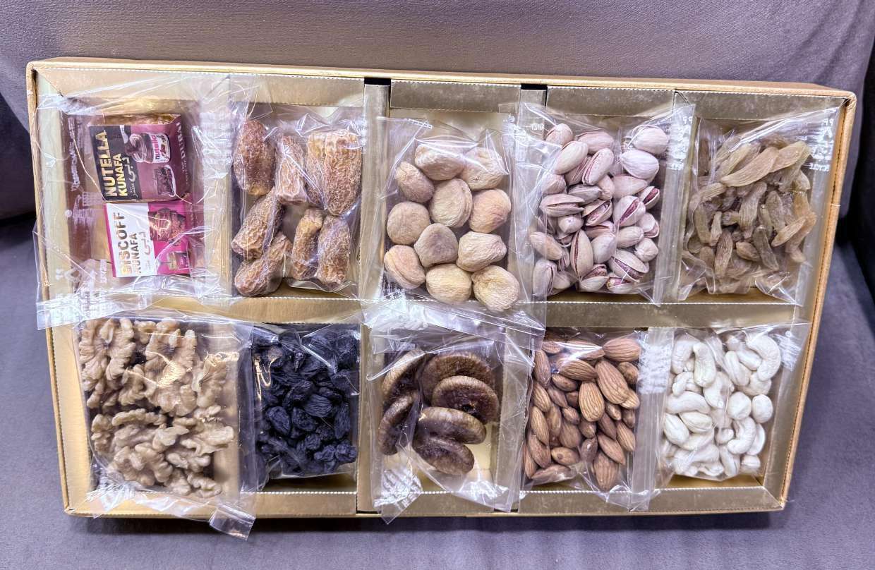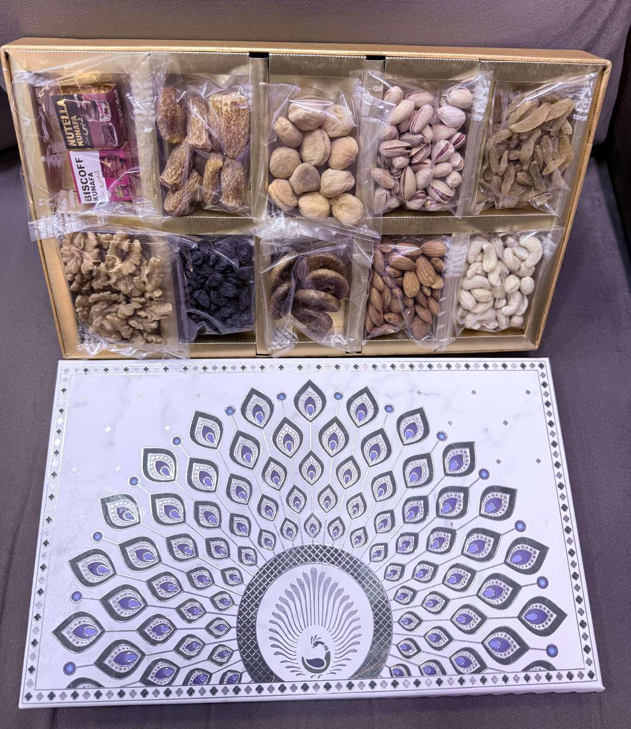 Kaju, Kissmiss, Badam, Pista, Anjeer, Jardalu, Black Raisins, Dry Dates, Walnut & Chocolate (50g each)