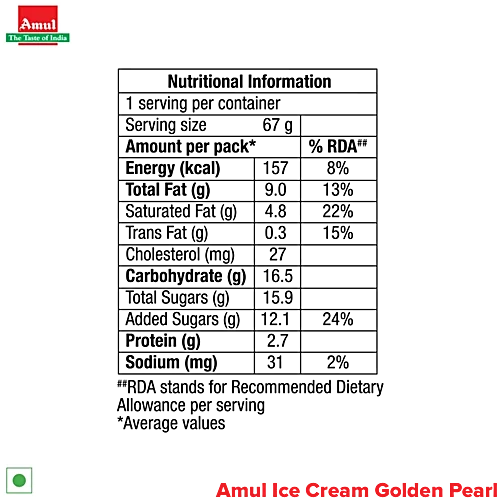 Amul Golden Pearl - Ice Cream, 125 ml Cup quantity