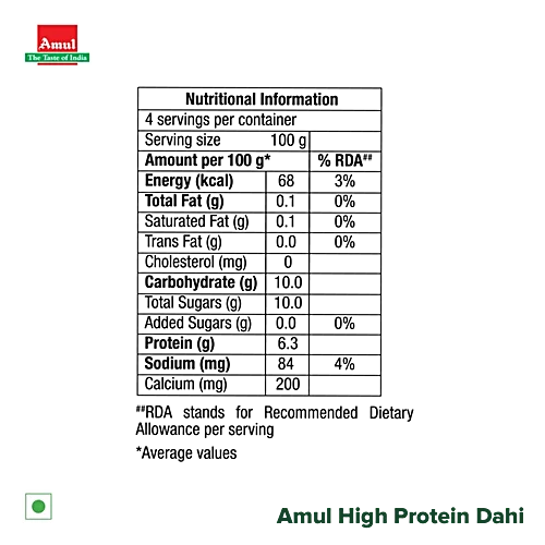 Amul High Protein Probiotic Dahi, 400 g quantity