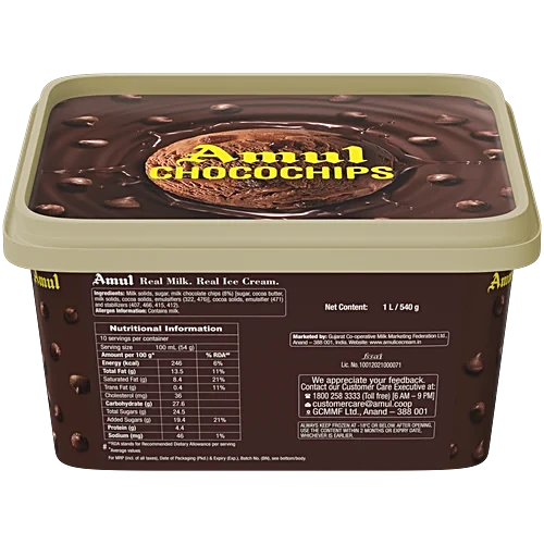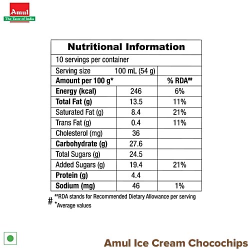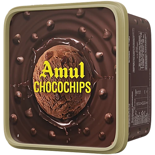 Amul Ice Cream - Choco Chips, Real Milk, 1 L Tub quantity