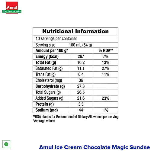 Amul Ice Cream – Chocolate Magic Sundae, 1 L Tub