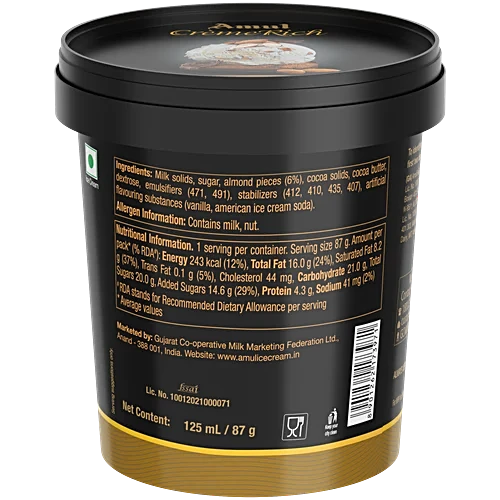 Amul Ice Cream - Creme Rich, Almond Fudge, 125 ml Cup quantity