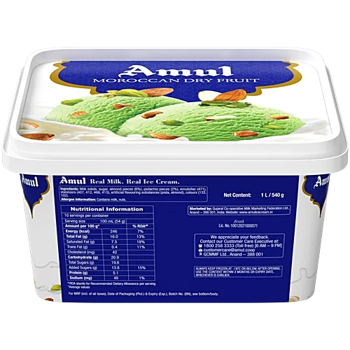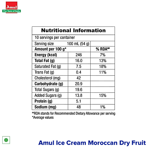 Amul Ice Cream – Moroccan Dry Fruit, 1 L Tub