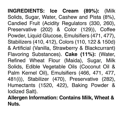 Arun Icecreams Cassata Slice Flavoured Ice Cream, 125 ml quantity