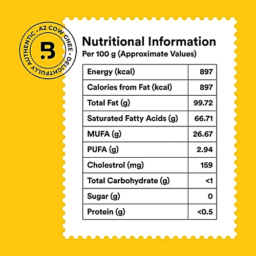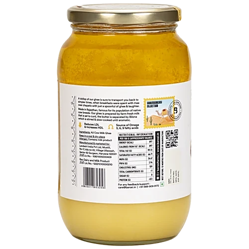 Aromatic & Pure: With a wonderful balance of Omega-6 to Omega-3 linoleic acids, Barosi A2 Desi Ghee is 100% aromatic and pure, free from pesticides and chemicals.