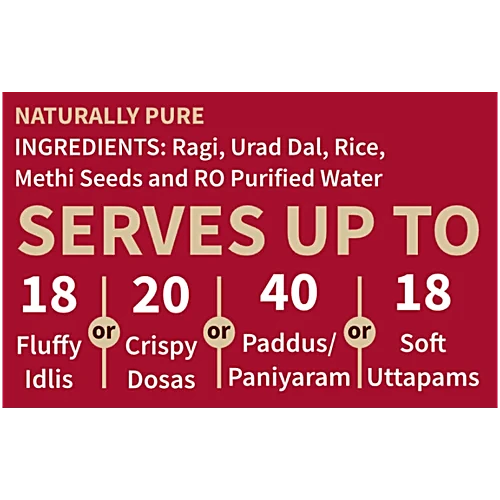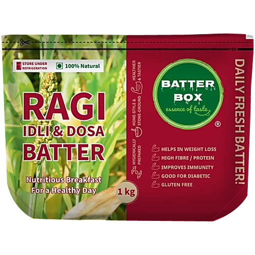 Indulge in the delightful and nutritious world of Batter Box Ragi Idly/Dosa Batter. This versatile batter effortlessly crafts fluffy idlis, crisp dosas, soft uthappams, and crispy paniyaram, catering to all your South Indian culinary cravings. Ragi, also known as finger millet, is a true superfood – rich in calcium, proteins, minerals, and fibre. Enjoy the exceptional health benefits of ragi, from aiding weight loss and regulating blood sugar levels to combating anaemia and reducing the risk of stroke and cancer. Naturally gluten-free, this batter is a delicious and even healthier alternative to regular idlis, making it a welcome addition to your kitchen. Simply pour, spread, and savour the delightful flavours and textures of this convenient, nutritious batter, perfect for breakfast, lunch, or dinner.