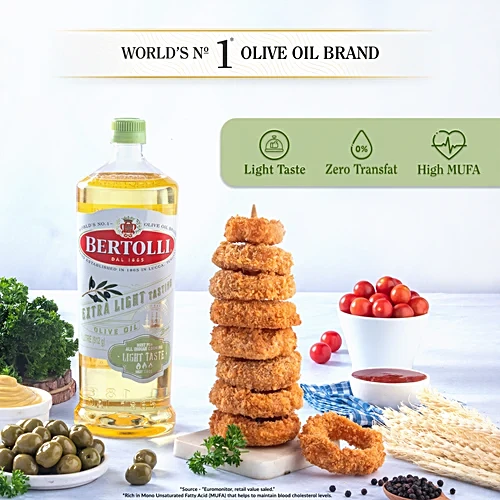 Experience the exquisite flavour and aroma of over 150 years of award-winning heritage with Bertolli Olive Oils. Thus, each batch of Bertolli Olive Oil is cold-pressed to meet the standards of taste, fragrance and nutrition. Not to mention, every container is ecologically packaged to minimize harm to the environment. Besides its many well-known health benefits, Extra Light Tasting Olive Oil has just a subtle hint of olive flavour that makes it a better substitute for Indian cooking compared to other plain vegetable oils. Use it in that heavenly Italian Pasta or mouth-watering Bhendi Tadka, fry up some crispy Kachoris, or even some dreamy golden Gujiyas, the possibilities are just limitless with Bertolli Extra Light Tasting Olive Oil that comes in 2 Litre, 1 Litre and 500 ml bottle.