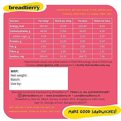 Breadberry Milk Bread, 400 g quantity