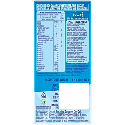 Britannia Nutrichoice Oats Cookies Diabetic Friendly, 6 x 25 g (Multipack)