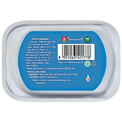 Britannia The Laughing Cow Processed Cream Cheese Spread - Goodness Of Cow's Milk, 180 g Tub quantity