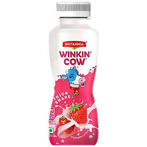 Britannia Winkin Cow Strawberilicious Thick Milkshake, 180 ml PET Bottle quantity