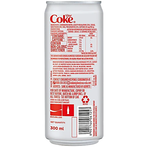 The same delicious, uplifting, and refreshing taste of Coca-Cola without the sugar. Diet Coke has a crisp flavour and contains less than 1 calorie, making it ideal for those who like to monitor their calorie intake. The best-known soft drink in the world, Coca-Cola was the leading cola drink in India until 1977, and it made a comeback in 1993. Coca-Cola offers a taste that refreshes for a rewardingly uplifting experience. While there’s no one quite like you, there’s a Coca-Cola for your uniqueness and style. Whether it’s a party Coca-Cola bottle, a mini, an ice-cold Diet Coke, or a Coca-Cola Zero Sugar in a can, there’s a refreshing way to enjoy your own! Try one today.