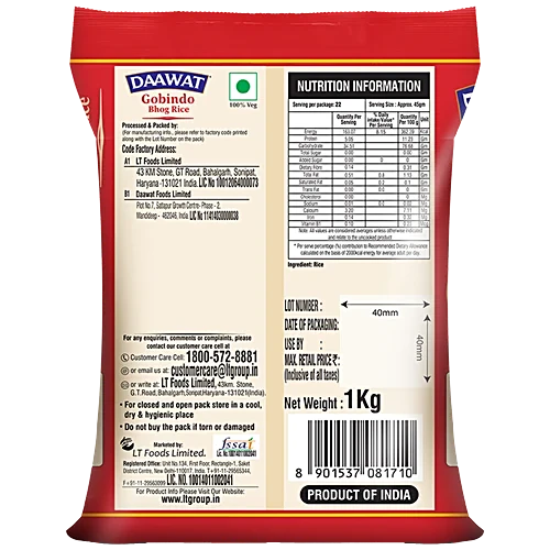 Daawat Gobindo Bhog Rice, 1 kg quantity