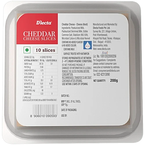 D'lecta Cheddar Cheese - Slice, 200 g (10 pcs) quantity