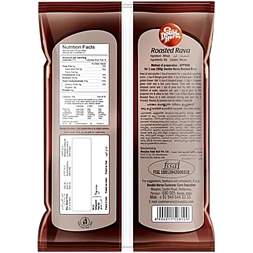 Elevate your culinary experience with the exceptional Double Horse Roasted Rava, crafted from the finest durum wheat. This nutritious and flavourful semolina, also known as sooji, boasts a delightful sweet, nutty flavour and an earthy aroma that will transport your senses. Packed with iron, minerals, and antioxidants, this versatile rava is perfect for creating a variety of sweet and savoury dishes, from couscous and pasta to the beloved Indian delicacies of upma and sweet puddings. Specially roasted to perfection, the rava has a rich texture and cooks in just 2 minutes, making it a convenient and hassle-free addition to your kitchen. Upgrade your dishes with the superior quality of Double Horse Roasted Rava, now available with a free 200g pack with every 1kg purchase. Discover the perfect blend of taste, nutrition, and convenience in every bite.
