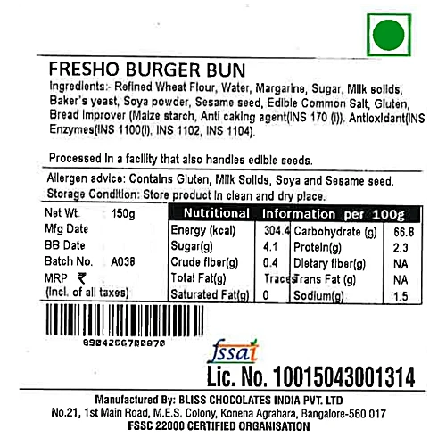 fresho! Burger Buns - Preservative Free, 150 g (2 pcs) quantity