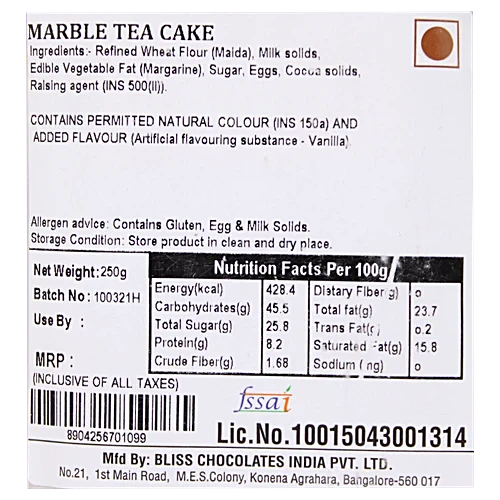 The Fresho Signature Marble Tea Cake can replace all your other fancy cakes. Although made with premium quality ingredients, it has a very homely taste and can be a great accompaniment for that cup of chai you’re having. With a soft, spongy and melt in your mouth texture, it is sure to become a staple at home. Your conversations with friends will become sweeter if you’re serving these. Explore Fresho Signature’s full range of pastries, brownies, and doughnuts.