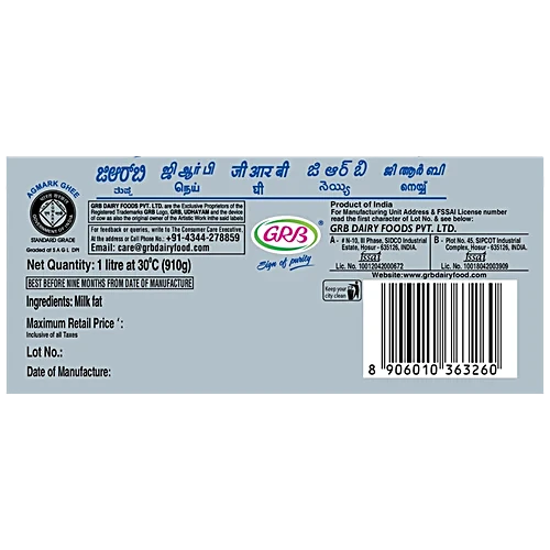 Experience the rich and authentic taste of GRB Ghee, crafted from premium butter using traditional methods. Perfect for cooking and baking, its golden hue and nutty aroma enhance every dish. Enjoy the pure, natural goodness that brings a touch of culinary excellence to your kitchen.