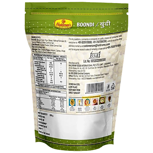 Haldiram’s Khara Boondi is a classic Indian snack known for its crunchy texture and savoury taste. Made from chickpea flour batter, shaped into small, crispy balls, and seasoned with a blend of spices, Khara Boondi offers a delightful snacking experience. Perfectly spiced with a balanced flavour profile, it is a popular choice for festivals, gatherings, or as a crunchy accompaniment to meals. Haldiram’s ensures each batch is fried to perfection, retaining its freshness and crunchiness. Enjoyed across India, Khara Boondi by Haldiram’s is a timeless favourite, loved for its crispy texture and satisfyingly bold flavours.