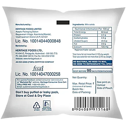 Heritage Special UHT Processed Homogenised Toned Milk, 500 ml Pouch quantity