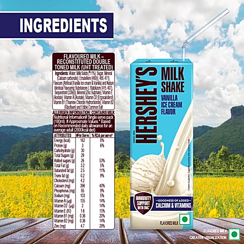 Hershey's Vanilla Ice Cream Flavor Milkshake, 180 ml quantity