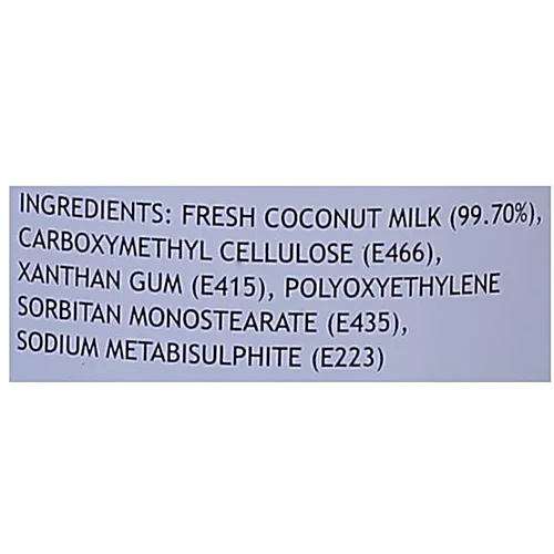 Fresh Coconut Milk, Carboxymethyl Cellulose (E466), Xanthan Gum (E415), Polyoxyethylene Sorbitan Monostearate (E435), Sodium Metabisulphite (E223)