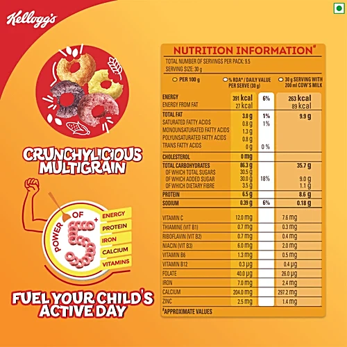 Burst Of Fruity Flavour In Milk: Give your milk a delicious twist of mixed fruit flavour with Kellogg’s Froot Loops.