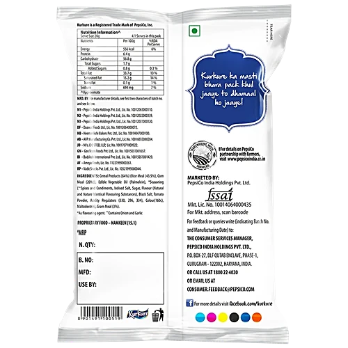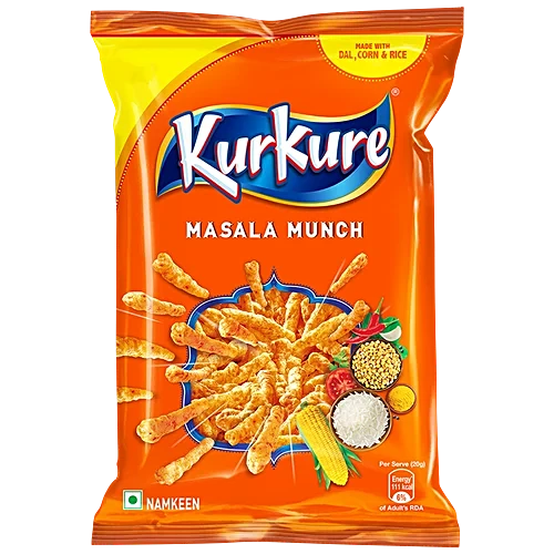 The Masala Munch is a classic Kurkure flavour with a great combination of spice and crunch. The brand-Kurkure is a crunchy, new-age Pack namkeen snack brand, which symbolizes light-hearted fun. Embodying Pack the spirit of India, Kurkure has found a home in millions of hearts and minds and enjoys the position of a strong love mark brand in India. Made with trusted kitchen ingredients- 100% vegetarian All the raw materials used in Kurkure comply with The Food Safety & Standards Act & Regulations 2006 and rules that govern the manufacture, distribution and sale of Kurkure.