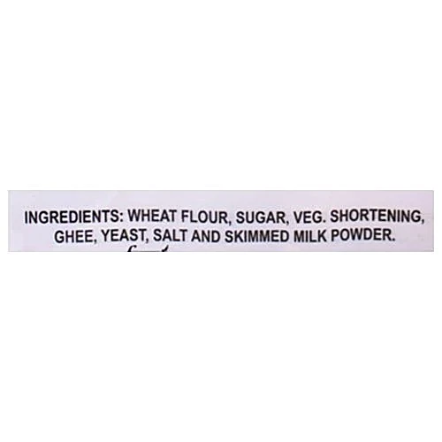 Wheat flour, sugar, vegetable shortening,ghee, yeast, salt, skimmed milk powder ,tutti frutti.