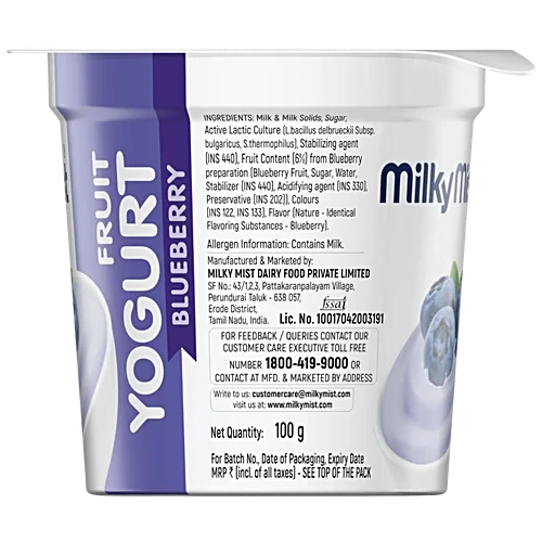 Milky Mist Fruit Yoghurt - Blueberry, 100 g quantity