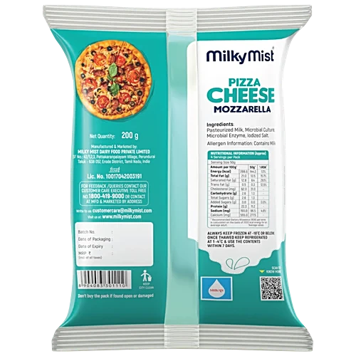 Milky Mist Pizza Cheese Mozzarella - Diced, 200 g Pouch quantity