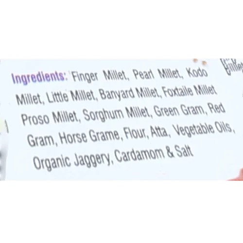 Organic jaggery is healthy and tasty, rich in iron and other minerals. Combined with 12 grains, this is a very healthy snack. Millet cookies are a healthy alternative to conventional snacks. These do not contain maida, baking powder, preservatives, artificial colours or flavours.