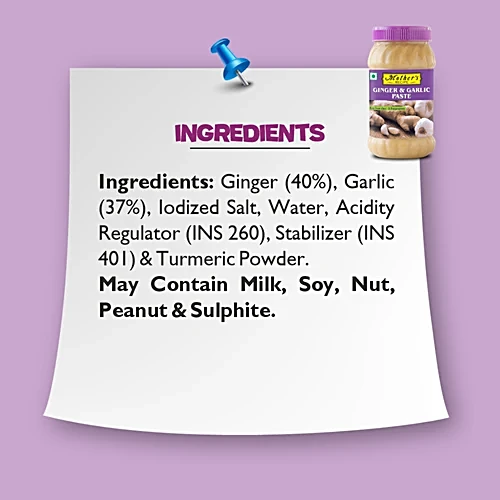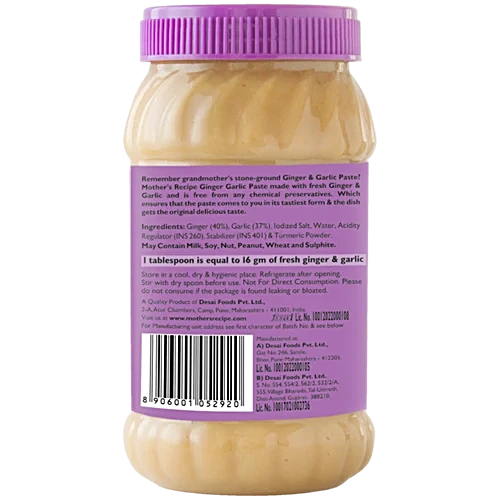 Mothers Recipe Ginger Garlic Paste guarantees that the paste comes to you in its tastiest appearance. And whenever you use it any dish you will get the unusual yummy tang of homemade paste. It is one of the most necessary ingredients in Indian cuisines. It is added to almost all non-veg dishes and some veg dishes like pulao biryani matar paneer chana masala etc.