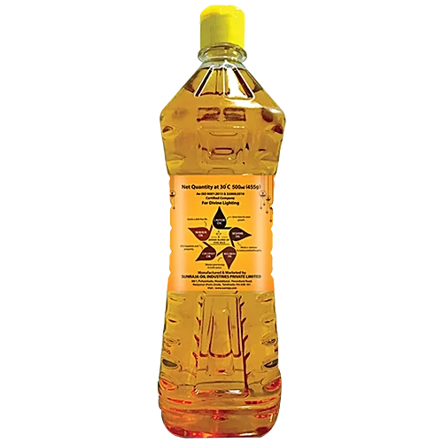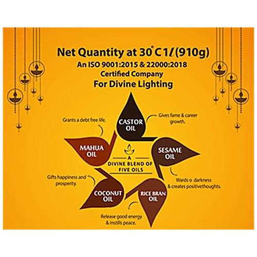 Nakshatra lamp oil, a combination of 5 oils, with a divine fragrance, brings happiness and goodness to your homes. Sesame oil – Wards of darkness and creates positive thoughts Rice Bran Oil – Releases good energy and instils peace Coconut Oil – Gifts happiness and energy Mahua oil – Grants a debt free life Castor oil – Gives fame and growth This panchadeepa oil, brings positivity, increases prosperity and makes your day gratifying. Choose Divinity! Choose Nakshatra!