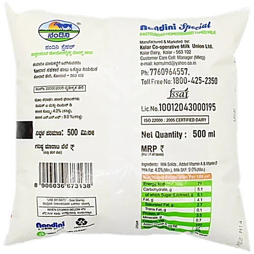 Nandini Special Toned Milk, 500 ml Pouch quantity