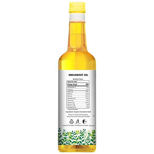 About the productNatureland Organic Groundnut Oil is a premium, cold-pressed peanut oil that is bursting with a sweet, robust flavour and a deep yellow colour. Packed with essential fatty acids like linoleic acid (omega-6), this versatile oil supports heart health and provides high energy. With a high smoke point of 450 degrees Fahrenheit, it is perfect for deep-frying, allowing you to create delicious, crispy dishes. Naturally free from cholesterol and low in saturated fats, this organic groundnut oil is one of the healthiest cooking oils you can choose. Indulge in its pleasant nutty aroma and smooth, sweet taste as you cook up a storm in the kitchen.