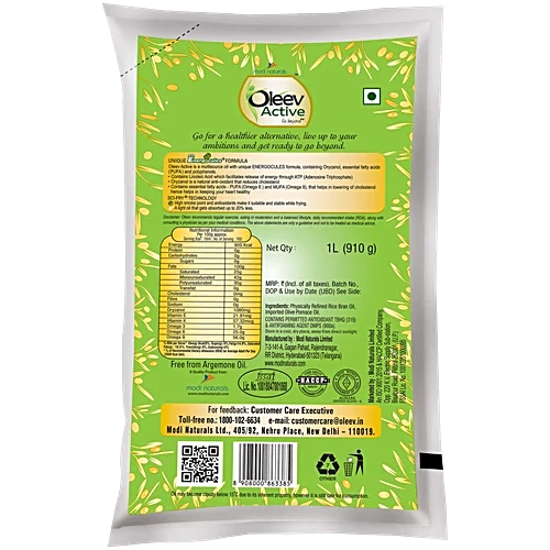 Oleev Active is an everyday cooking oil with the goodness of olive oil, making it the perfect choice for all types of cooking. It retains flavour while making food healthier. It features the Energocules formula, which makes it rich in Linoleic Acid and ensures you stay active and energised throughout the day.