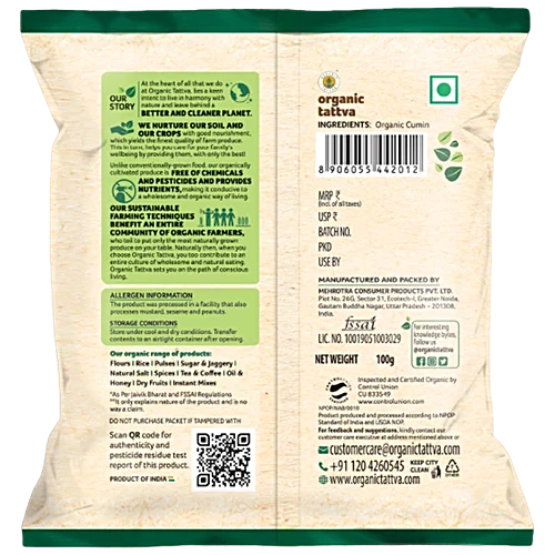Organic Tattva Organic Cumin – Whole offers an authentic and aromatic spice for your culinary needs. Sourced from organically grown cumin plants, these seeds are free from synthetic pesticides and chemicals, ensuring purity and natural goodness. Renowned for their distinctive flavour and rich aroma, they enhance the taste of various dishes, from curries to soups and salads. Organic Tattva prioritises quality and sustainability, ensuring that each pack of cumin seeds retains its essential oils and nutritional benefits. Perfect for health-conscious cooks and spice enthusiasts, Organic Tattva Organic Cumin – Whole is a wholesome choice for elevating your culinary creations.
