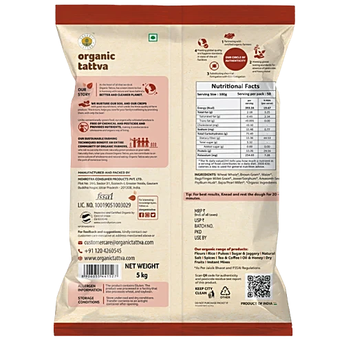 Discover the wholesome goodness of Organic Tattva’s Multigrain Atta, a delightful blend of nourishing grains that brings both health and flavour to your everyday meals. Crafted with a careful selection of organic ingredients, including jowar, ragi, bajra, kodo, and amaranth, this flour is a true delight for the senses. Boasting a light, mild flavour, it is the perfect canvas for both sweet and savoury baking, allowing you to create a variety of delectable dishes. Rich in fibre, protein, and essential amino acids, this multigrain atta is not only a healthier choice but also a commitment to organic farming and the delivery of pure, unadulterated goodness straight to your kitchen. Enjoy the benefits of Zero trans fats, no additives, and the versatility to create delicious chapatis and rotis that will leave your taste buds craving more. Embrace the wholesome experience of Organic Tattva’s Multigrain Atta and elevate your culinary journey to new heights.