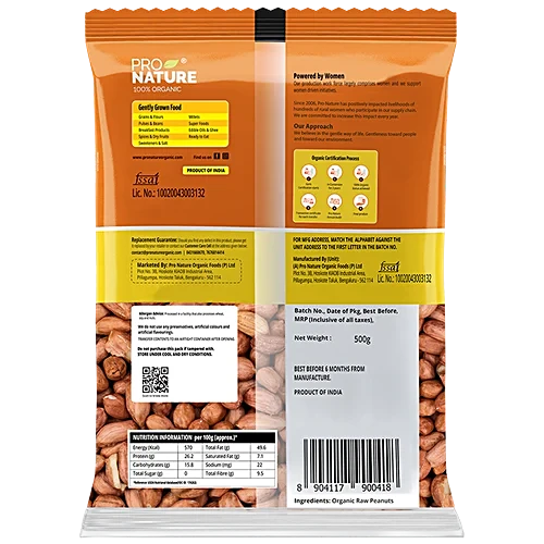 Indulge in the goodness of Pro Nature Organic Raw Peanuts, a delightful snack and versatile ingredient that supports a balanced diet. Sourced from India, these fresh and wholesome peanuts are packed with protein, healthy fats, and essential vitamins. Enjoy them as a nutritious on-the-go snack or incorporate them into your culinary creations. Beyond their delectable flavour and texture, these peanuts also offer cardiovascular benefits, helping to reduce LDL (bad) cholesterol and increase HDL (good) cholesterol levels, promoting a healthier heart. Whether you choose to bake, roast, or boil them, Pro Nature Organic Raw Peanuts are a versatile and nourishing addition to your kitchen.