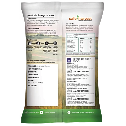 Discover the natural goodness of Safe Harvest’s Khandsari Sugar, sourced from the pristine region of Uttarakhand. This artisanal sugar is meticulously processed without any bleaching or artificial additives, retaining its off-white hue and rich, molasses-like flavour. Guilt-free and delicious, this pesticide-free sugar is perfect for all your culinary creations, from healthy cooking to indulgent baking. Enhance the taste and texture of your dishes with this versatile, high-quality ingredient that is sure to elevate your culinary experience.