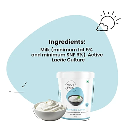 Sids Farm Buffalo Curd – Pure, No Hormones, Rich In Calcium & Protein, 400 g