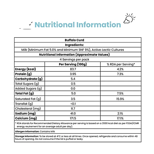 Sids Farm Buffalo Curd - Pure, No Hormones, Rich In Calcium & Protein, 400 g quantity