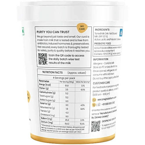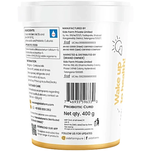 Sids Farm Probiotic Curd, 400 g Cup quantity