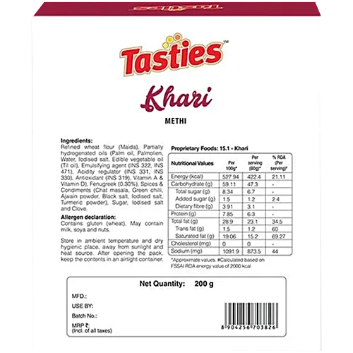 Tasties Khari - Methi, 200 g quantity