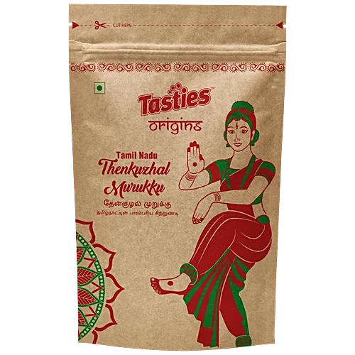 Namkeen – Thenkuzhal/Sev Murukku, Authentic, Traditional Flavours, Savoury Snack is the snack you need to satisfy your hunger pangs and cravings and is the perfect munchie to carry with you everywhere. Perfectly blended with fresh and local spices just the way you like it, our snacky treats come with a spicy and sweet tadka and are naturally processed with the finest split chickpea flour and blended well with corn flakes, red lentils, and red chilli powder. Our Namkeen – Thenkuzhal/Sev Murukku, Authentic, Traditional Flavours, Savoury Snackreat is a traditional recipe that you can revel in at any time of the day and is sure to make your tastebuds dance. A natural energy booster, our savoury and sweet treat is best accompanied by any beverage of your choice and is ready to eat. Packed with nutrition, our Namkeen – Thenkuzhal/Sev Murukku, Authentic, Traditional Flavours, Savoury Snack has no added preservatives and no trans-fat and is the best snack to have in your pantry. Indulge in savour goodness with our Namkeen – Thenkuzhal/Sev Murukku, Authentic, Traditional Flavours, Savoury Snack now! Experiment with the eclectic range of Tasties Origin’s Namkeen collections on Big Basket from Lahsun Sev, Indori Mixture, and more, where tradition meets flavour in local recipes.
