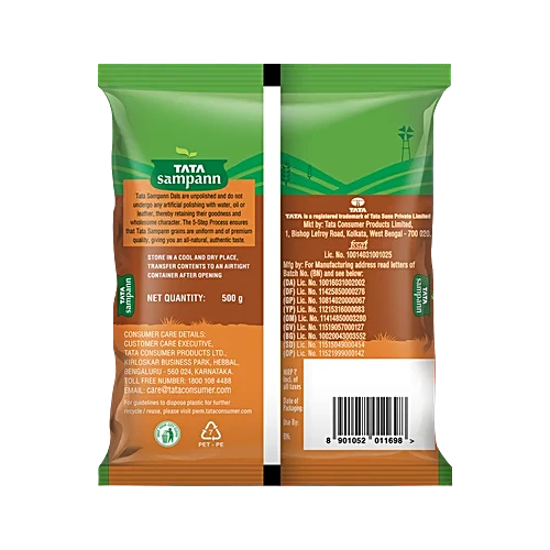 For most Indians, comfort food is always linked to easy, homemade meals and what can be more wholesome than a hearty serving of White Lobia. A staple across many households, Tata Sampann Unpolished White Lobia (Chawli) is free from any polishing with water, oil, or leather, ensuring its goodness and wholesome quality. Each grain passes through a stringent 5-step quality process, delivering uniformity, authenticity, and premium taste to your meals. Rich in protein, White Lobia supports a balanced diet and helps keep your meals filling and satisfying. Made from select grains and recommended by Chef Sanjeev Kapoor and Chef Ranveer Brar, Tata Sampann Unpolished White Lobia is perfect for preparing flavourful curries, stews, stir-fries, and wholesome everyday dishes. So, whenever you’re in the mood for something tasty and nourishing, enjoy the authentic goodness of Tata Sampann Lobia. Explore Tata Sampann Pulses range – Toor dal, Chana dal, Moong dal, Moong dal Chilka, Green Moong, Masoor dal, Masoor Small dal, Masoor Whole dal, Kali Masoor dal, Urad dal, Urad Whole dal, Urad Kali, Kabuli Chana, and Rajma. Storage Instructions: Store in a cool and dry place. Transfer contents to an airtight container after opening.