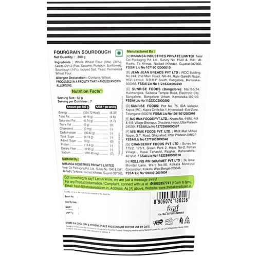 The Baker's Dozen Zero Maida Fourgrain Sourdough, 380 g quantity