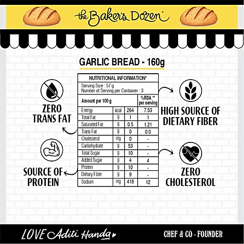 The Baker’s Dozen Zero Maida Garlic Bread, 160 g